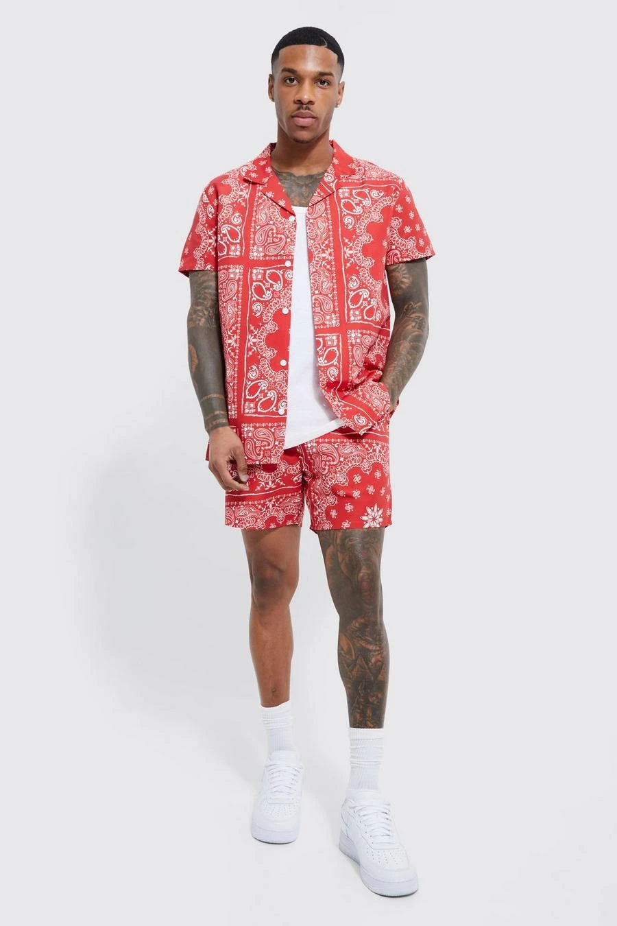 Short Sleeve Bandana Swirl Shirt And Swim Short