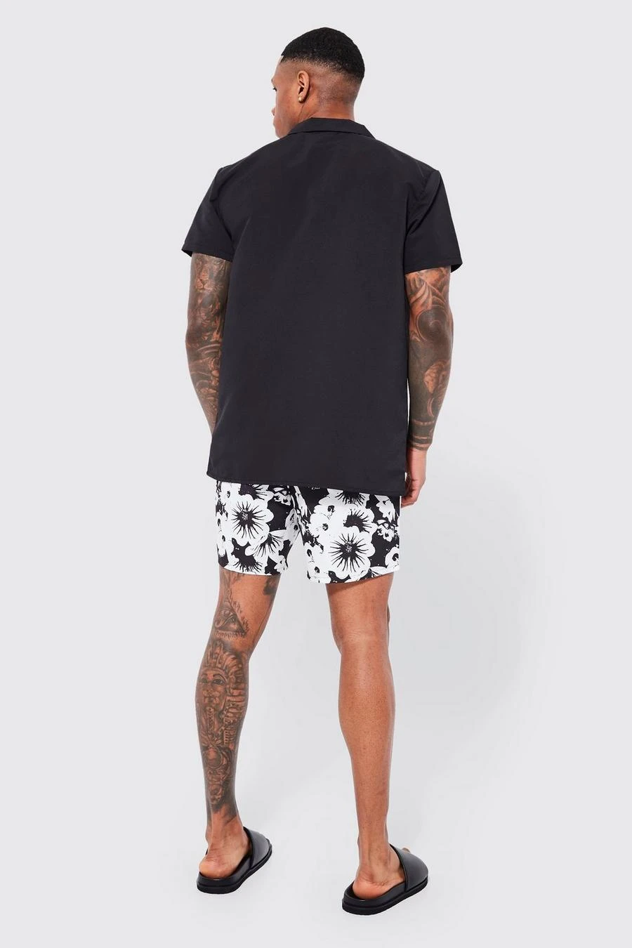 Short Sleeve Floral Pocket Shirt And Swim Set