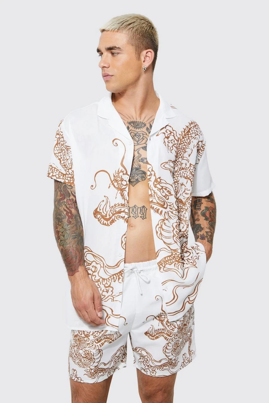 Short Sleeve Oversized Dragon Placement Shirt & Swim