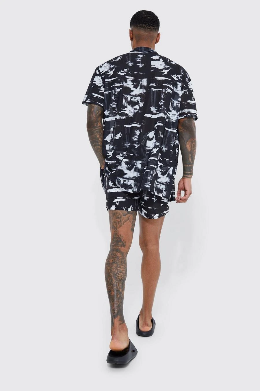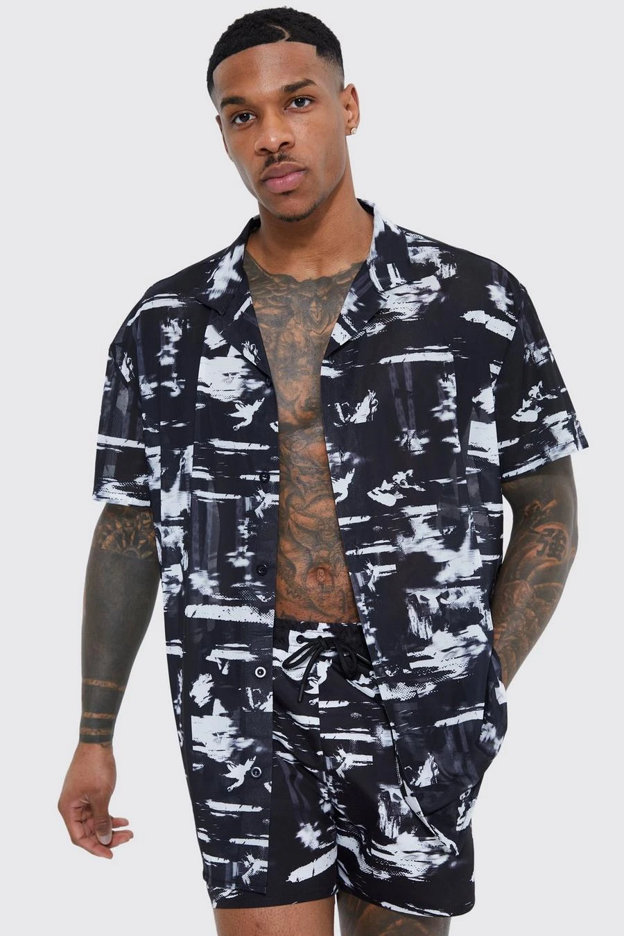 Short Sleeve Oversized Poly Abstract Shirt And Swim Set