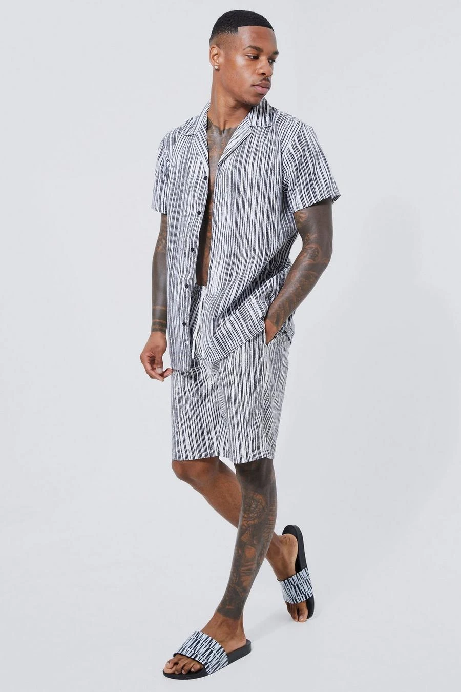 Short Sleeve Revere Stripe Swim Shirt & Short Set