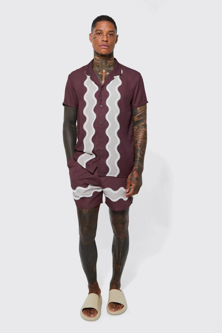 Short Sleeve Swirl Stripe Shirt And Swim Short
